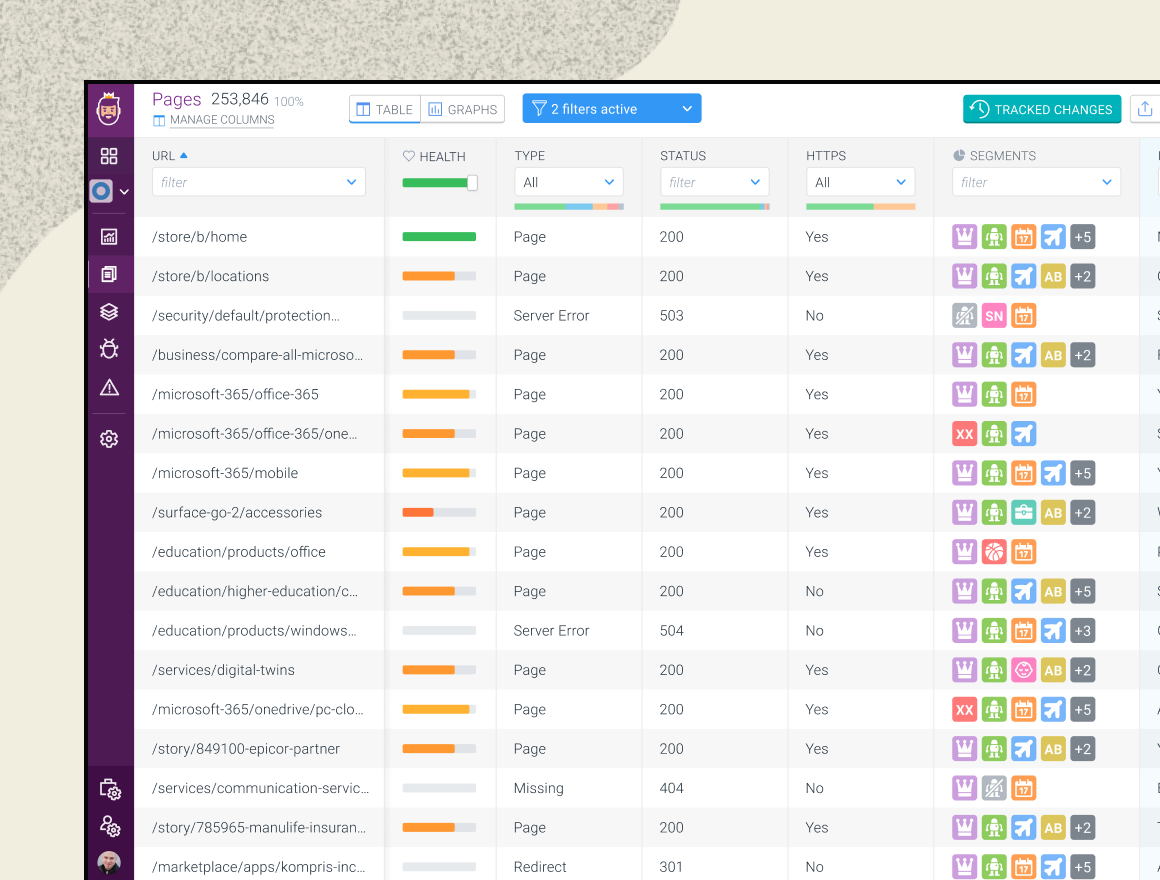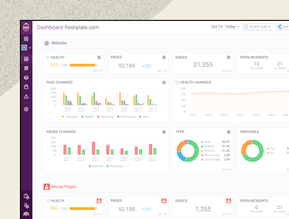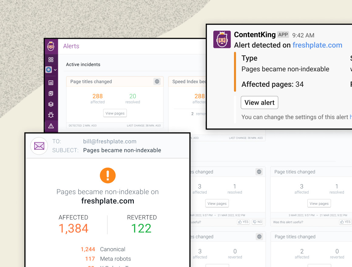Dank Echtzeit-Überwachung und -Warnmeldungen bei Änderungen oder Problemen kannst du Probleme beheben, bevor sie sich auf dein Ranking auswirken.
