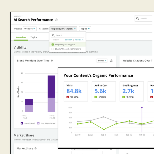 Kombiniere Insights aus klassischer und KI-Suche in einer Plattform – für eine zukunftsfähige Strategie. Maximiere deine Sichtbarkeit, sorge für ein konsistentes Markenerlebnis und erreiche deine Zielgruppe überall dort, wo sie sucht.
