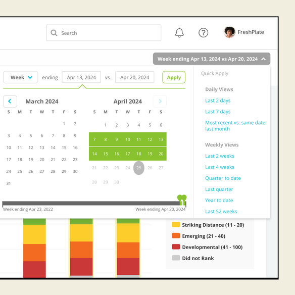 Tracke deine Keyword-Performance global oder filtere nach Standort, Gerät und Suchmaschine im Zeitverlauf. Erfahre, wo du erfolgreich bist und wo sich neue Chancen ergeben.