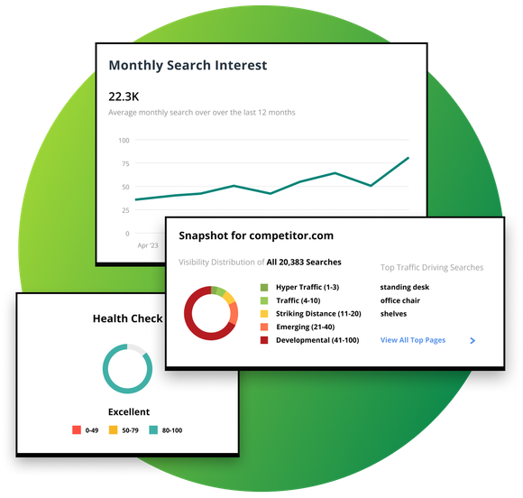 Instantly analyze opportunities to outrank competitors in search engines with on-demand market-share analysis, side-by-side competitive comparisons, and more, across the categories, locations, and search engines that matter most to your business.