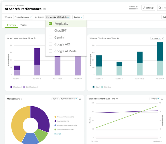Understand the building blocks of your AI presence. We not only track if you show up across engines from ChatGPT to Google AIO, but also how, through deep sentiment analysis—on a trusted, API-first data foundation that gives you a truly reliable measure of your performance.