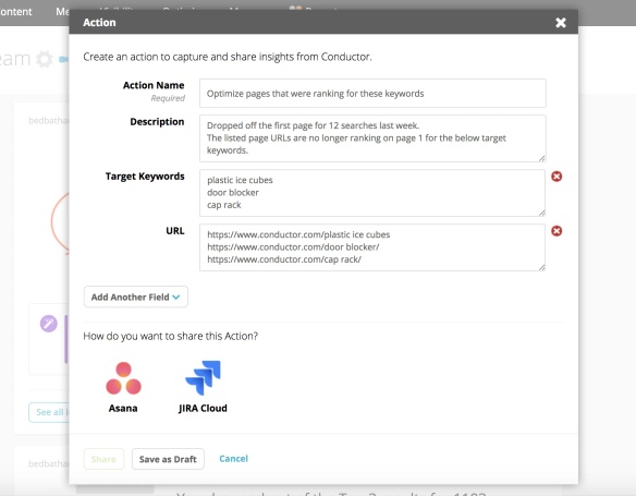 Create smart Content Briefs directly in Conductor that can be sent to your favorite task management tools like Asana, Trello, and Jira.