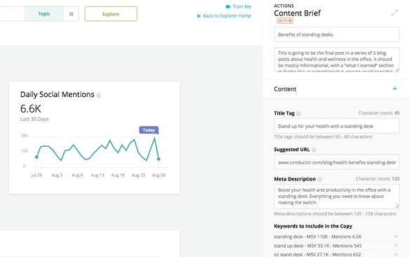 Seamlessly add the keywords, insights, and recommendations you discover across Conductor's platform directly to your briefs with one click of the Actions wand.