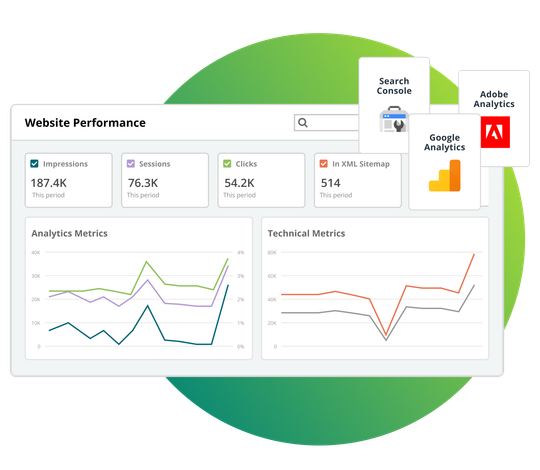 Analyze SEO, content analytics, and technical performance side-by-side —so you can measure ROI and prioritize opportunities across your entire site and for every page.